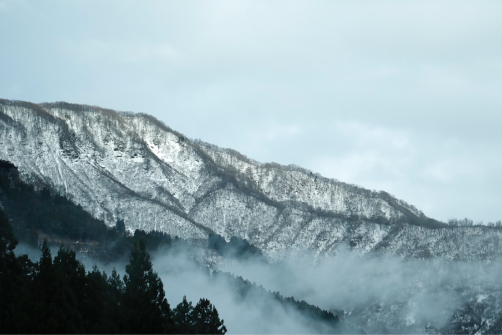 白山ろくにある一里野温泉という小さな集落で、マタギの宿を営んでいます。宿から見上げるのは白山一里野高原。トレッキングやスキー、山菜取りやきのこ狩りなど四季折々に変化する高原の大自然を満喫できます。山を分け入っていくと、ブナやミズナラなどの落葉広葉樹の高木が大きく枝を広げる森になります。白山ろくに暮らす人々は、昔から、この豊かな森と共生してきました。