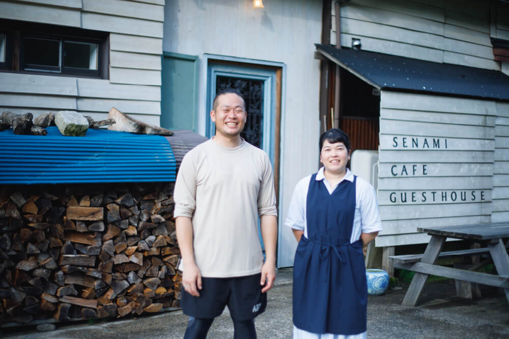 お寺の仕事のかたわらカフェとゲストハウスを運営する波佐谷さん夫妻。共に自然の中での生活が気に入っているそう。