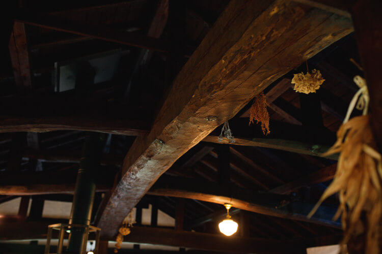 「今では考えられないほど立派な木材をふんだん使って建てられました。構造体はすべて硬くて重いケヤキの材です。このような家は、雨の吹き込みを防げば、200年、300年と保つそうです」と信道さんは話します。かつてこの地域では、孫が家を建てるための木を植えるというサイクルが受け継がれ、誰かが家を新築する際には集落のみんなが木の伐り出しや建築作業を手伝ったそうです。その伝統は、戦後の林業の衰退とともに失われてしまいました。波佐谷さん夫妻は、瀬波の文化を色濃く残すこの古民家をカフェ&ゲストハウスという形で守っていこうと決意しました。
