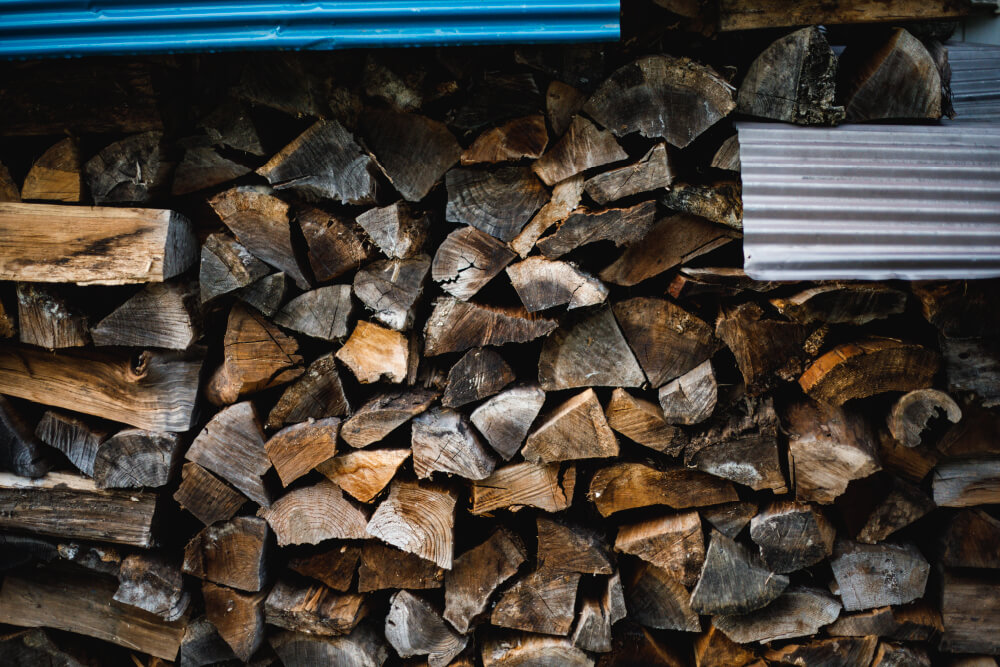 暖房は薪ストーブ。近隣の森の間伐材をもらい受け、薪に利用している。