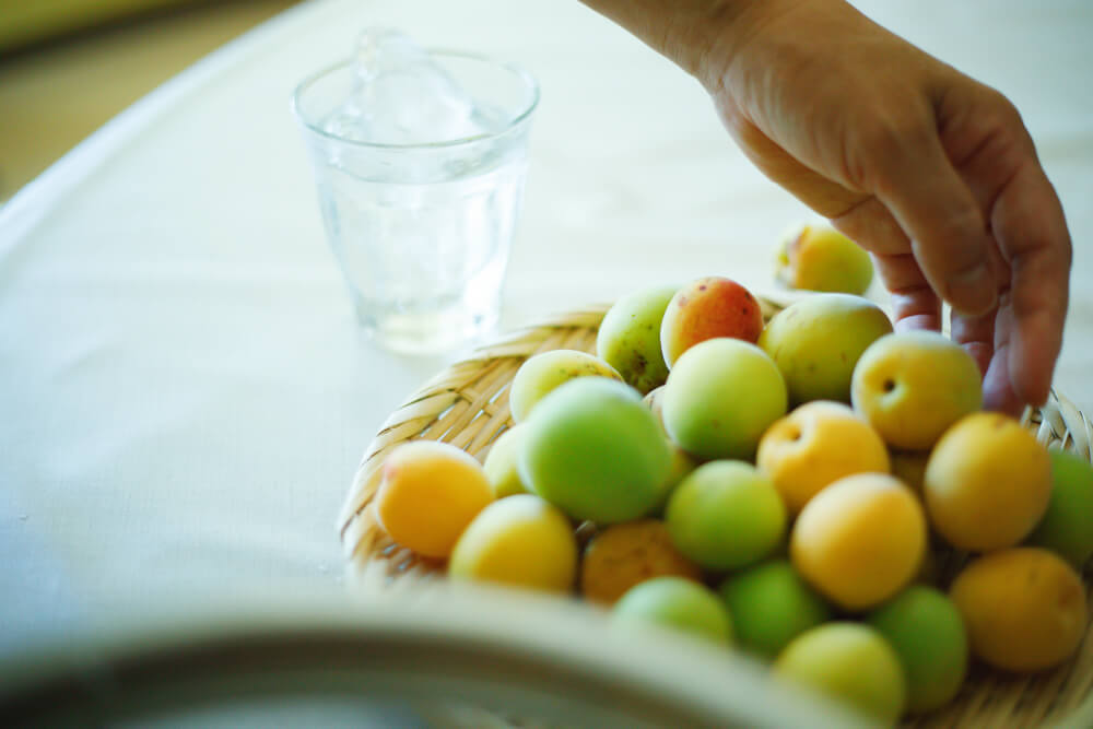 今日の昼下がりは、梅ジュース作り。庭先で採れたばかりの梅を使って、ジュースのもととなるシロップを仕込みます。昨年漬け込んだ美味しい梅ジュースをいただきながら、竹串を使って梅のヘタをチクチクと。またいい〜香りの梅ジュースになりますように。