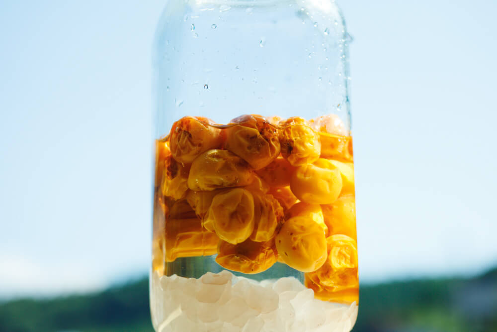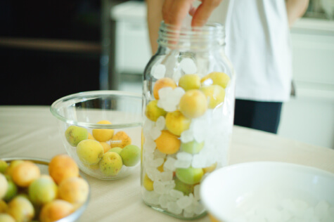キャニスターに実と氷砂糖をまんべんなく詰めたら仕込み完了。
