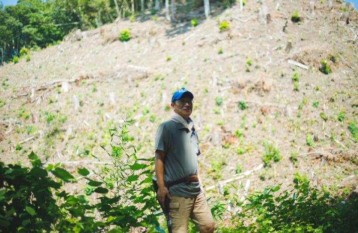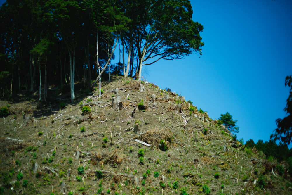 森林での作業に同行させてもらうと、大瀧さんは木が伐採された斜面に連れて行ってくれました。